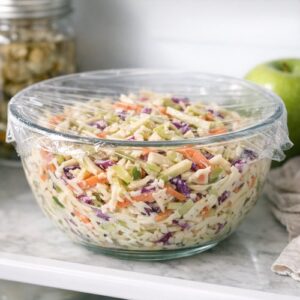 Yes, and I’d argue it actually improves with storage. The finished coleslaw keeps beautifully in an airtight container in your refrigerator for up to four days. The flavors continue to develop, and the texture remains crisp because the vinegar and salt preserve the vegetables’ structure.