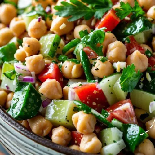 Imagine crunchy cucumbers, juicy grape tomatoes, and a hint of zesty lemon all mixed up with tender chickpeas. Add some fresh herbs, a drizzle of a homemade dressing, and voilà! You have a dish that’s not only vibrant but packed with nutrients.