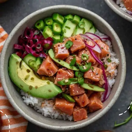 Yes, you can prep components ahead—marinate the fish, cook the rice, and prepare toppings. However, assemble the bowl just before serving for the freshest experience!